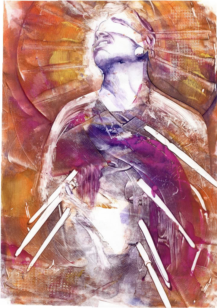 St. Sebastian Mono-print & Watercolor 13" x 19"